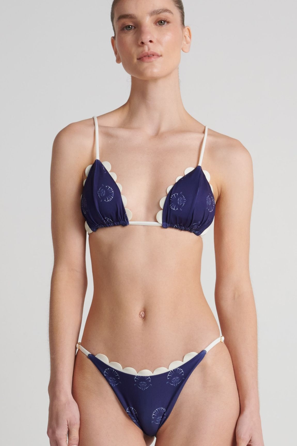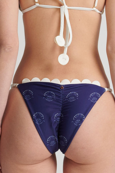 Bottom con tensor graduable en los costados, acabado en baño de oro, y fruncido en la parte posterior.