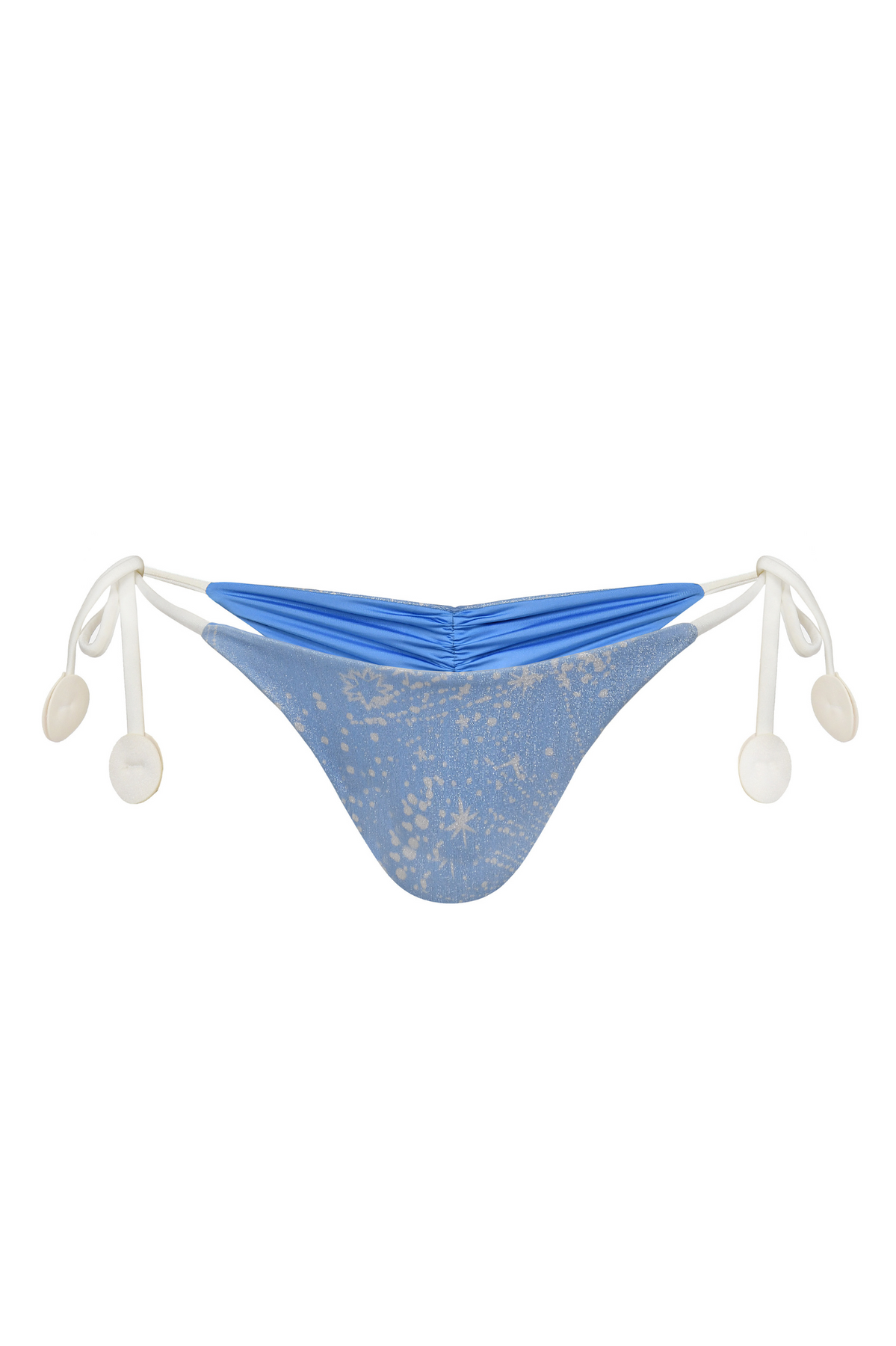 Bottom con ajuste lateral y terminacion decorativa laminadas y  fruncido en la parte posterior.